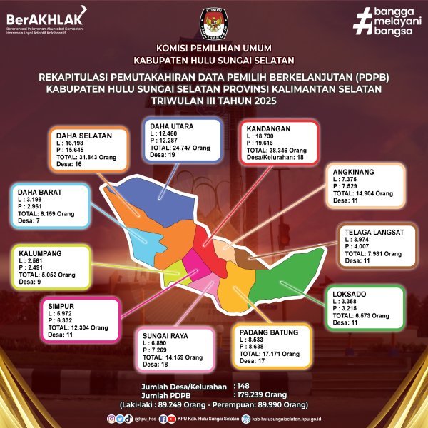 Rekapitulasi Pemutakhiran Data Pemilih Berkelanjutan (PDBD) Kabupaten Hulu Sungai Selatan Provinsi Kalimantan Selatan Triwulan Ketiga Tahun 2025