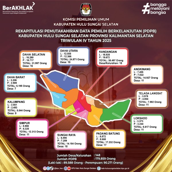 Rekapitulasi Pemutakhiran Data Pemilih Berkelanjutan (PDBD) Kabupaten Hulu Sungai Selatan Provinsi Kalimantan Selatan Triwulan Keempat Tahun 2025