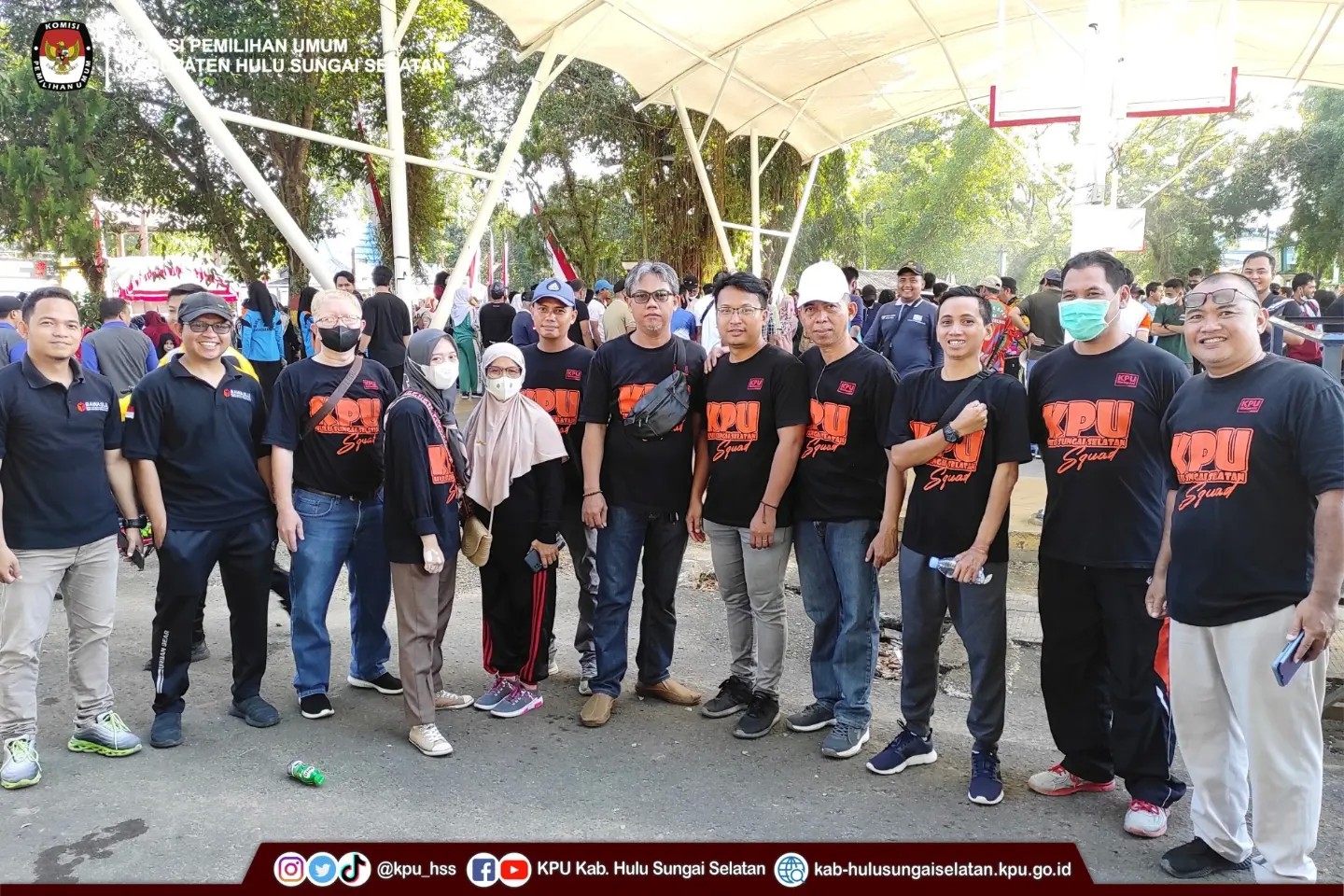 Hai #temanpemilih, KPU Kabupaten Hulu Sungai Selatan berpartisipasi dalam rangkaian kegiatan untuk memeriahkan Hari Proklamasi 17 Agustus yang diselenggarakan oleh Dinas Pemuda Olahraga dan Pariwisata (DISPORAPAR) Kabupaten Hulu Sungai Selatan bersama Komite Olahraga Rekreasi Masyarakat (KORMI) Kabupaten Hulu Sungai Selatan, yang menggelar olahraga masyarakat/tradisional yang bertempat di Lapangan Lambung Mangkurat pagi tadi (12/8). Kegiatan diawali dengan senam pagi dan jalan santai bersama seluruh peserta yang terdiri dari Organisasi Perangkat Daerah (OPD), Instansi Vertikal, BUMN, BUMD dan siswa-siswi perwakilan sekolah se-Hulu Sungai Selatan. Olahraga masyarakat/tradisional yang dilombakan pada acara tersebut, diantaranya senam, tenis meja, lomba batarik upih, lomba membawa bola pingpong dengan wancuh, game balogo, game bakatikan, dan game sumpit. Ada pula penampilan karate tradisional dan silat budaya. KPU Kabupaten Hulu Sungai Selatan mengikuti beberapa lomba, yaitu lomba bakatik dan balogo. Selain itu, acara semakin meriah dengan adanya doorprize yang diberikan oleh panitia setelah peserta mengikuti jalan santai. #kpumelayani #hutri77