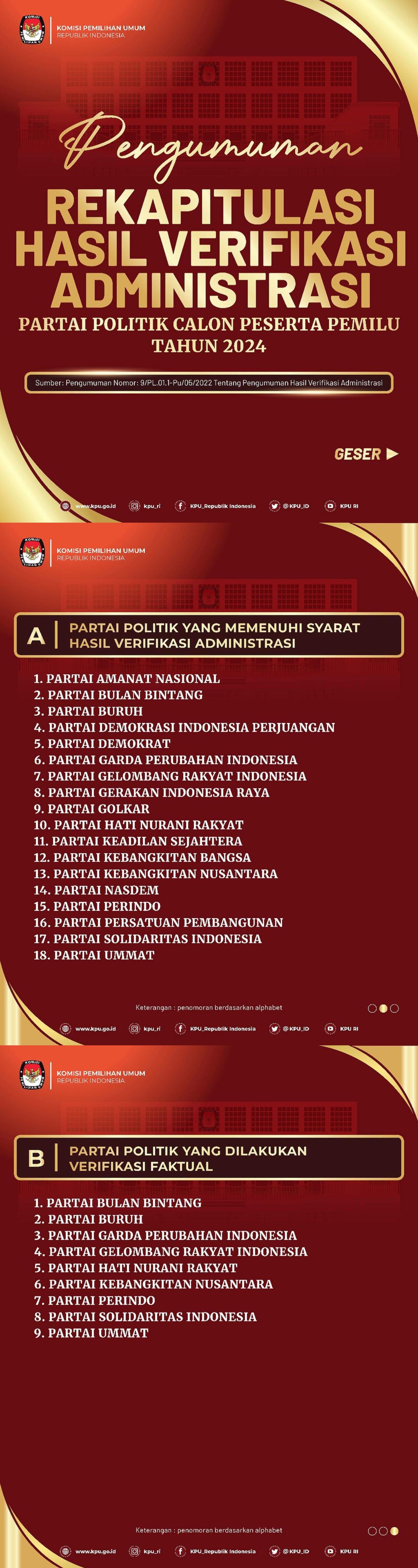 Pengumuman Hasil Verifikasi Administrasi Partai Politik Calon Peserta Pemilihan Umum Anggota Dewan Perwakilan Rakyat dan Dewan Perwakilan Rakyat Daerah Tahun 2024